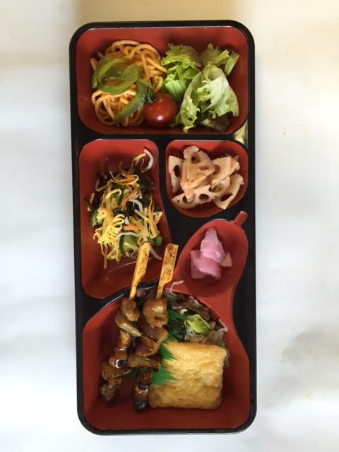 焼き鶏牛蒡串 と ナポリタンスパゲッティー