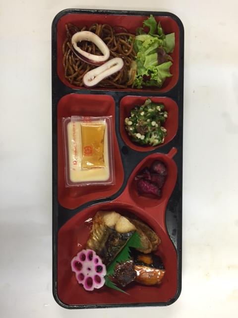 サバの塩焼き と 焼きそば に イカの塩茹で