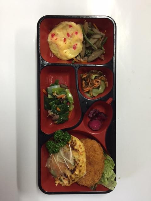 緑黄色野菜の豆腐焼き みぞれあんかけ と 分葱豚肉煮