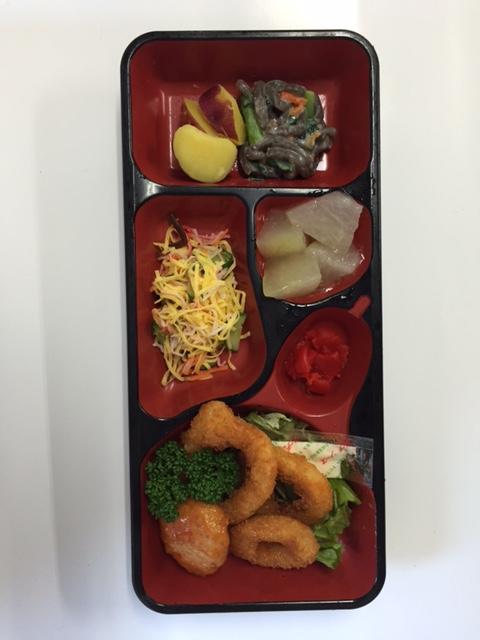 イカリングフライ に トマトソースの鶏つくね と こんにゃくの柚子味噌和え